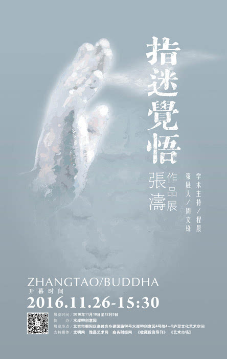 2016年11月26日下午15:30,“指迷觉悟——张涛作品展”在北京庐灵文化艺术空间开幕,展览从艺术家张涛2014年至今历时三年创作的108幅佛造像中挑选了二十五幅精彩作品进行展览。这是艺术家对于东方古老佛教敏感而深刻的个人体验,在走遍中国各大佛教圣地之后以油画丙烯色彩流动的方式对“佛教造像”做出艺术实践的首次尝试。