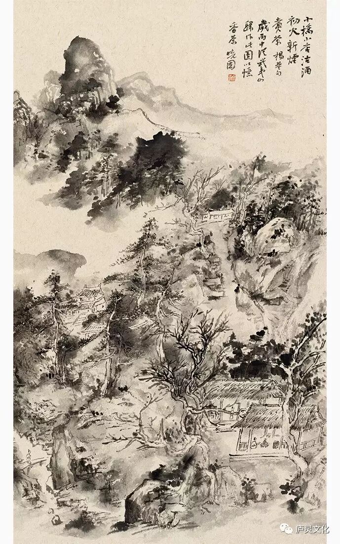 小桥小店沽酒 94×44cm 纸本水墨 2016年