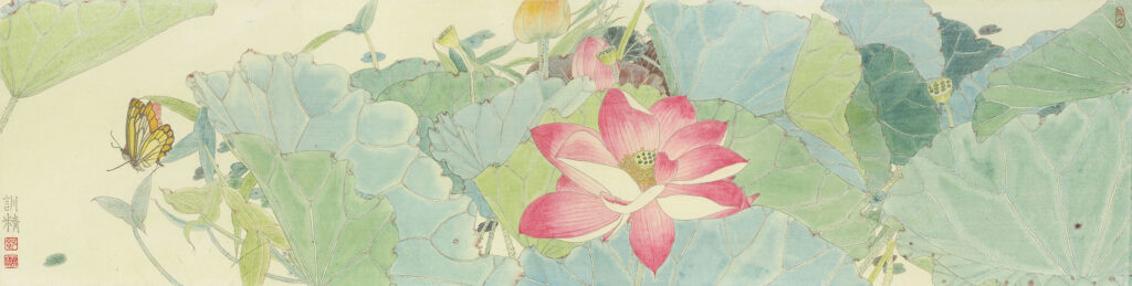 荷香引蝶图 33㎝×131㎝ 纸本设色 2017年