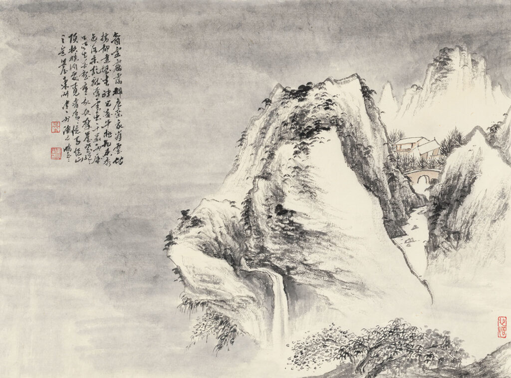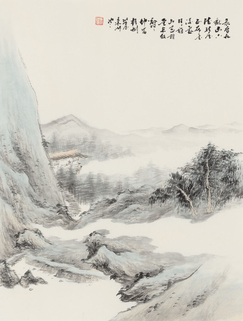 在用笔上,东洲很注重一种松动轻灵的体验。这种用笔体验从元人传统而来,到明清文人画那里发展到极致。在点叶和皴法的用笔处理上,他成功传达出内心中悠游自在的情感,下笔时见破笔散锋,但精神爽健,很好地将散淡的情绪与笔触的偶然效果结合起来。在此基础上,他通过有针对性的积皴积染,使得墨色层次丰富而苍润。黄宾虹说画画筑基于笔,而建勋于墨。东洲擅笔法固然可贵,但更可贵的是他能藏笔而做到墨法浑融。
