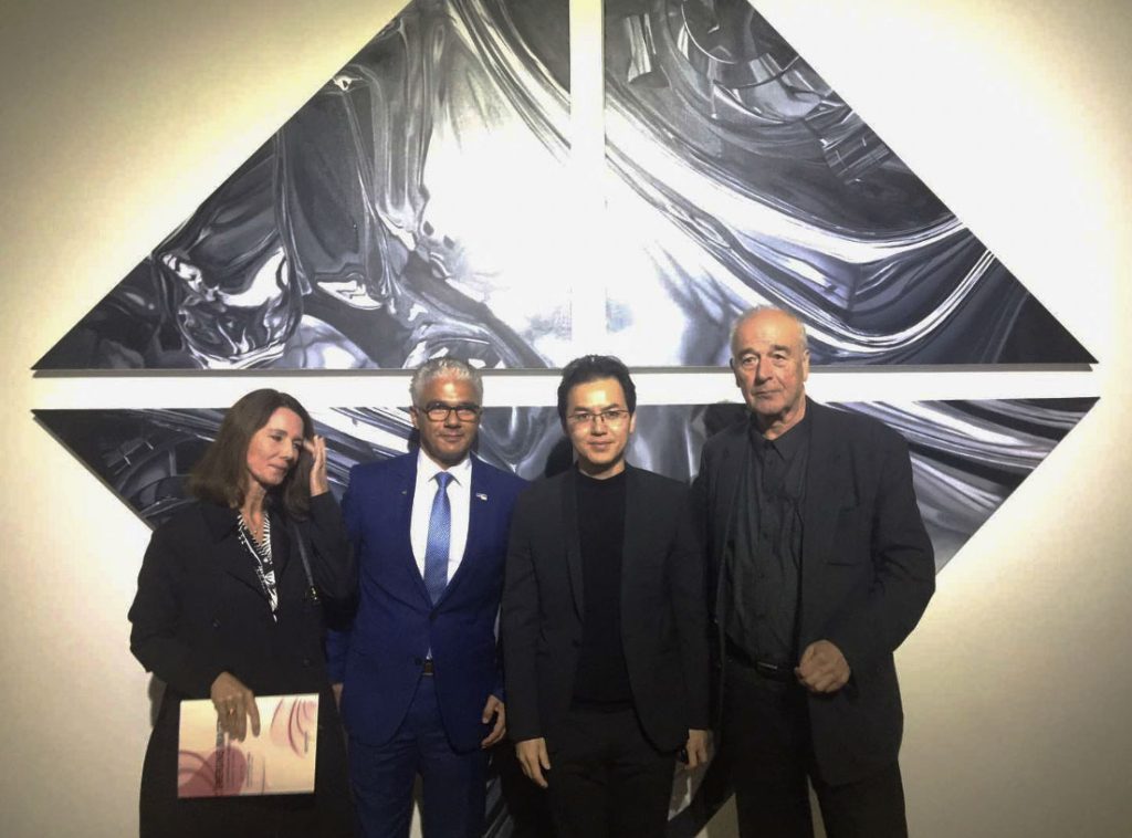 2018年参加在德国波恩当代艺术馆举办的《境现——中国当代艺术展》与嘉宾合影(开幕式上与波恩市市长Alexander Sridharan先生和策展人波恩艺术馆前馆长迪特·荣特教授在作品前合影)