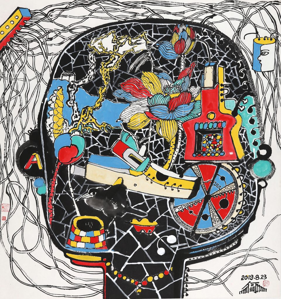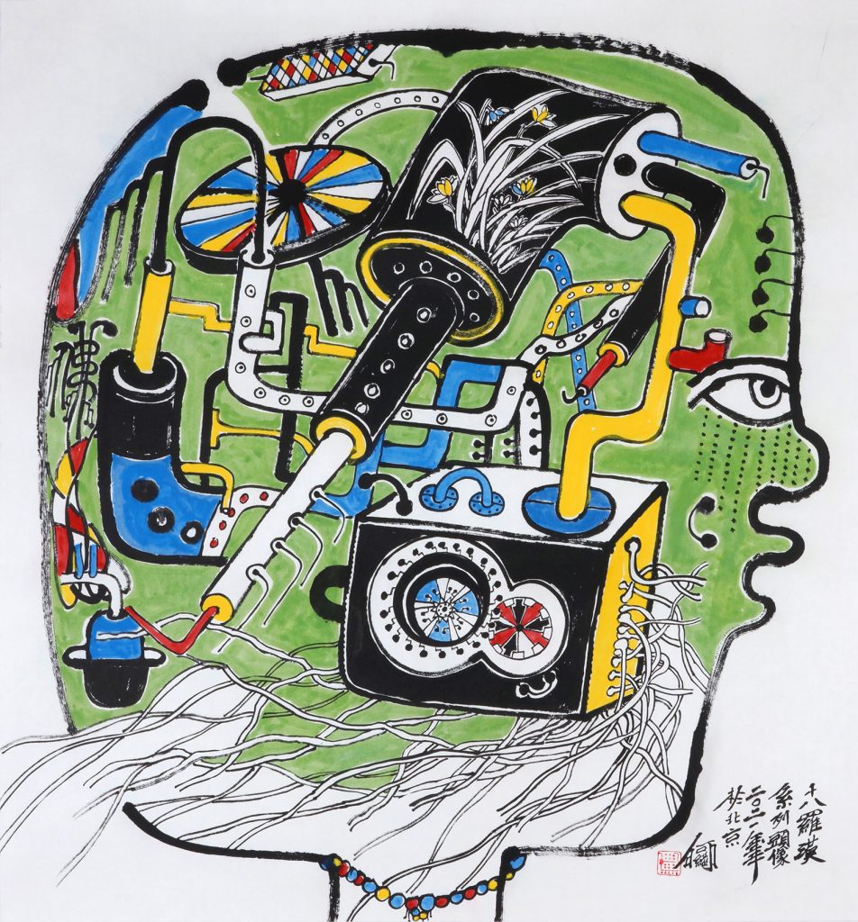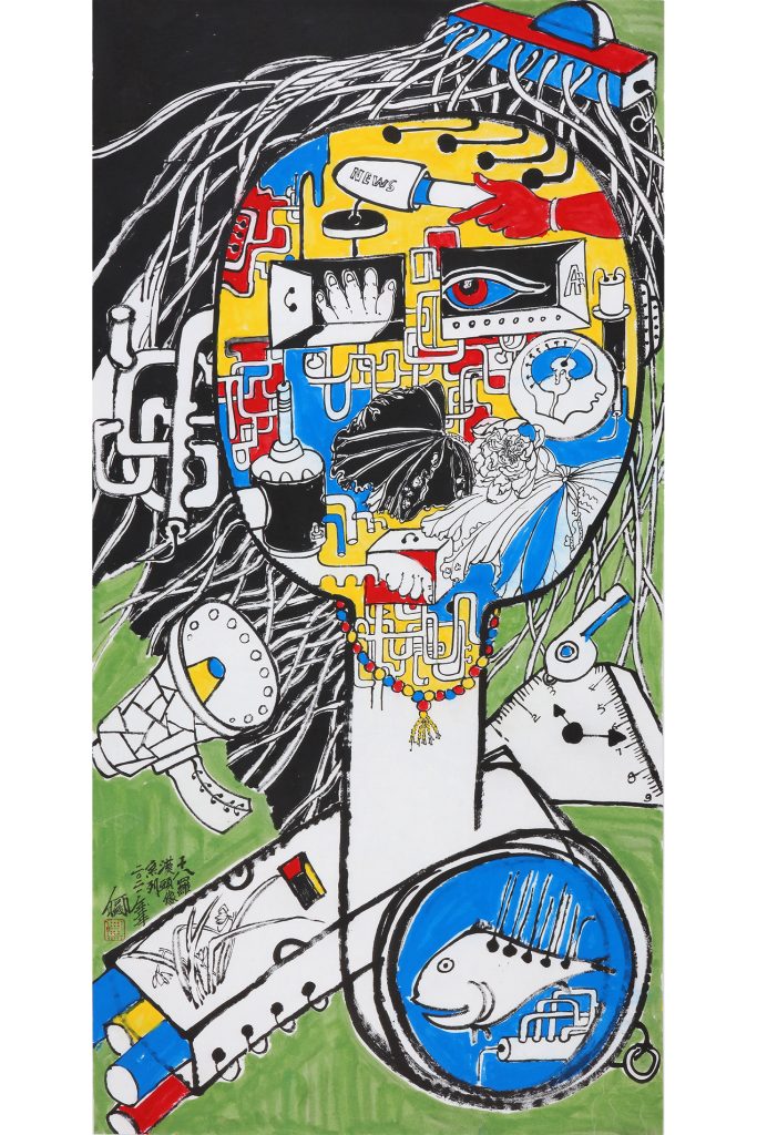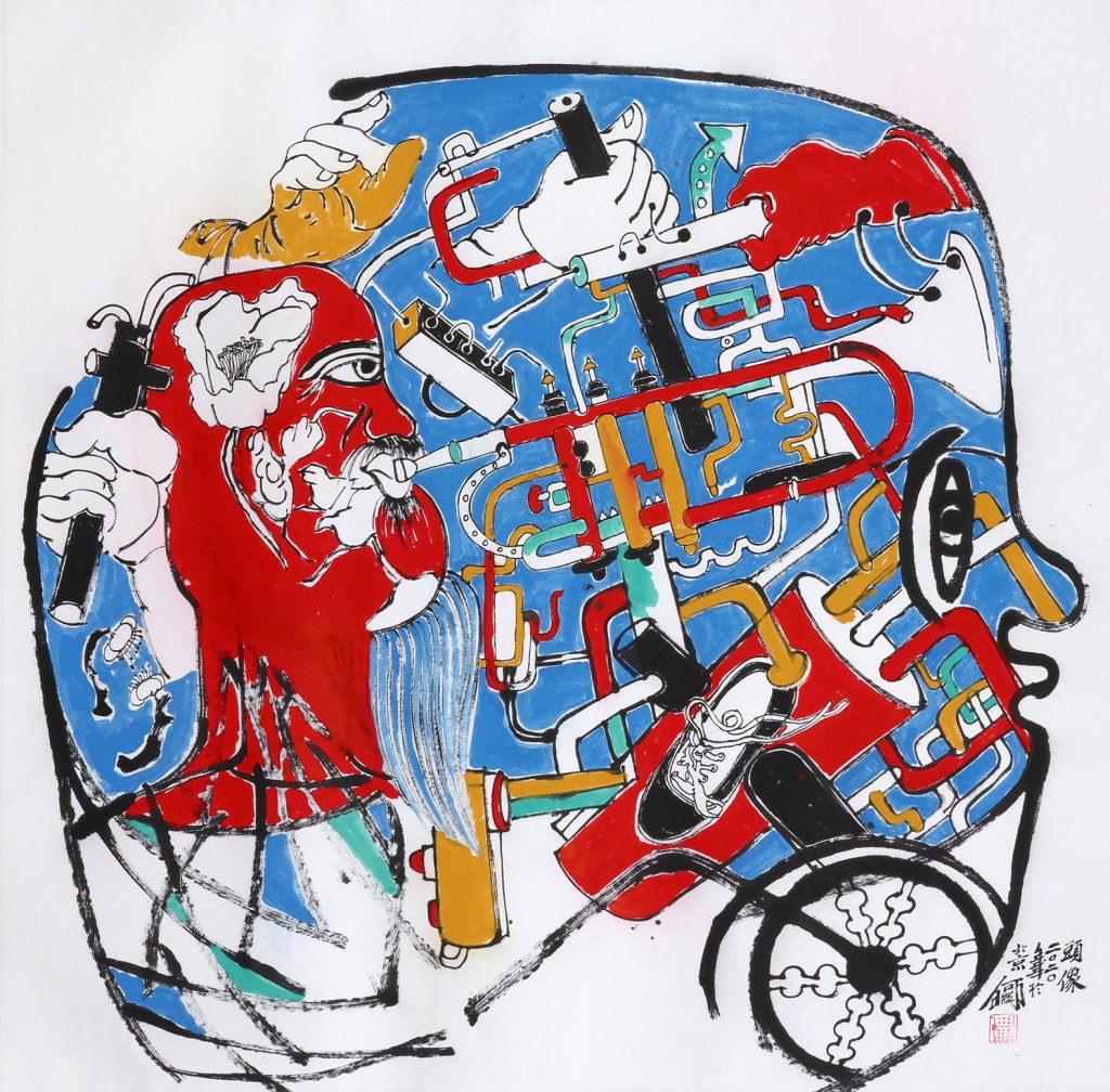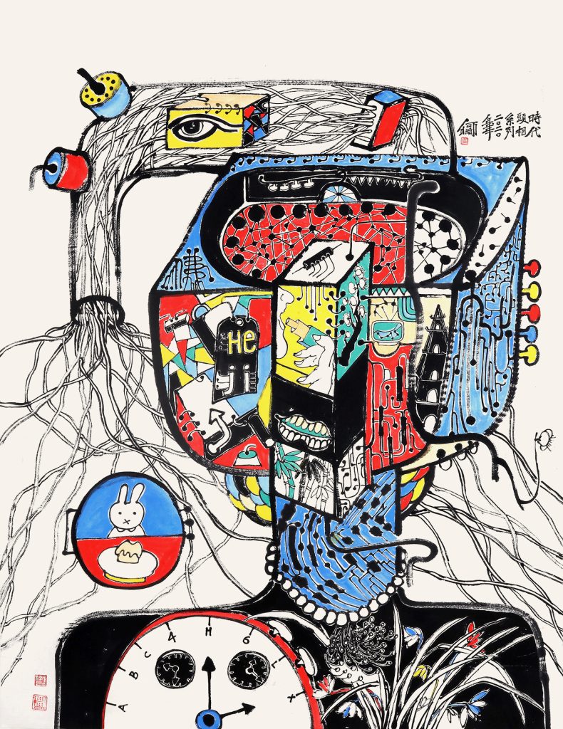 中国的传统绘画,自从与书法结缘以后,便从书写方式中独立出一种线性美学,与西方的透视法远远地拉开距离,形成了自己的表现程式与艺术脉络。艺术家何继熟谙这个传统,精于书画之法,曾临摹过大量的中国古画,对以书代画的传统笔墨,有着深刻的领悟与深厚的积累。然而,何继却又并不满足于此,而是着眼于艺术发展的未来,尤其对当代社会的诸多变化,投入了极大关注。近年来他所创作的这些绘画作品,以后工业文明的各种形态为题材,即是对当代现实做出的一种精神反应,体现了何继的社会参与和文化自觉。具体到何继的作品,从后工业社会的各种形态,如建筑设计、机器图纸、集成电路,以及芯片等不同造型模式中,提取视觉元素,摄取形象资源,再运用传统中国绘画的白描手段,与泼墨方式巧妙地结合起来,抽象出一个个意向丰富、色彩斑斓的画面,既表达了何继对现实社会的人文关怀,同时也渗透了他的美学思想。这种“何式美学”,依托着后工业社会的背景,以传统的笔墨为基础,走线与渲涮,相互关联和转换,形成一个个收放自如、张弛有度的视觉符号,不仅复活了传统艺术的表现力;更为重要的是,也为当代艺术拓展了语言的维度。