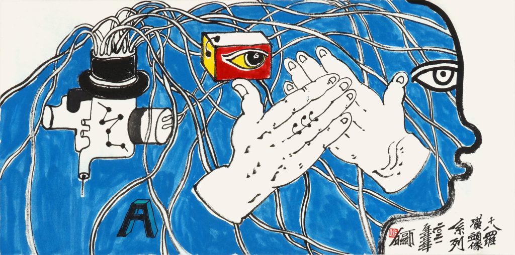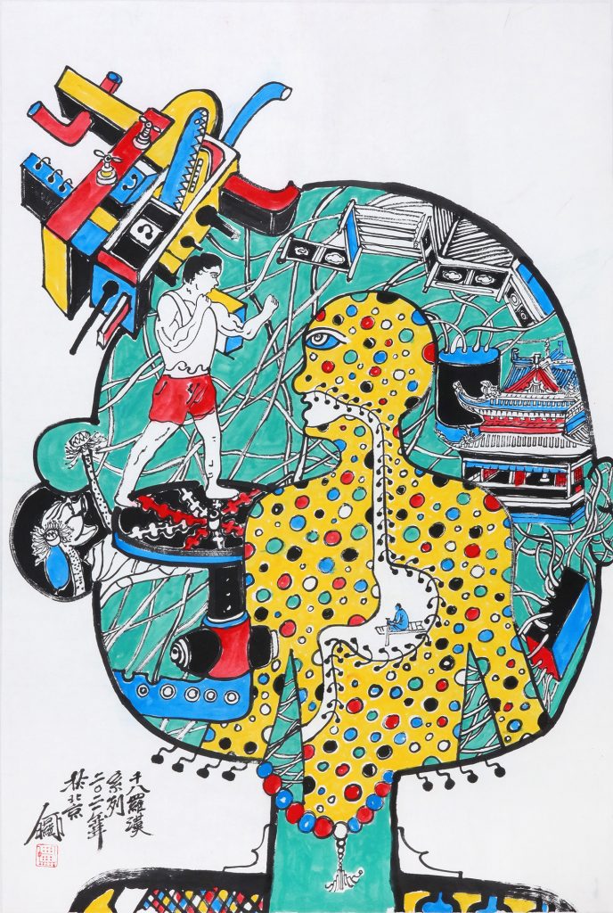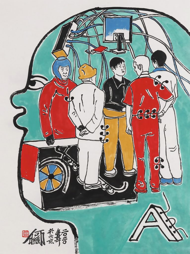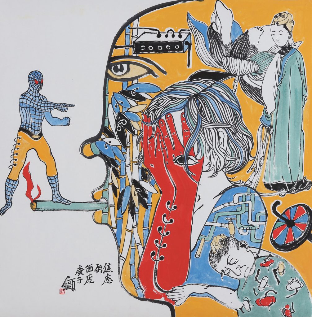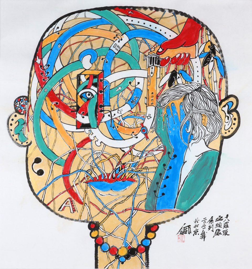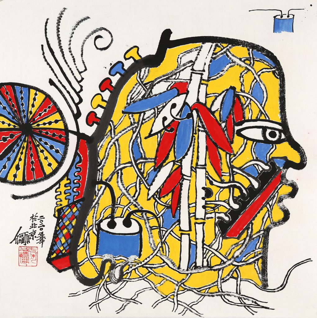 中国的传统绘画,自从与书法结缘以后,便从书写方式中独立出一种线性美学,与西方的透视法远远地拉开距离,形成了自己的表现程式与艺术脉络。艺术家何继熟谙这个传统,精于书画之法,曾临摹过大量的中国古画,对以书代画的传统笔墨,有着深刻的领悟与深厚的积累。然而,何继却又并不满足于此,而是着眼于艺术发展的未来,尤其对当代社会的诸多变化,投入了极大关注。近年来他所创作的这些绘画作品,以后工业文明的各种形态为题材,即是对当代现实做出的一种精神反应,体现了何继的社会参与和文化自觉。具体到何继的作品,从后工业社会的各种形态,如建筑设计、机器图纸、集成电路,以及芯片等不同造型模式中,提取视觉元素,摄取形象资源,再运用传统中国绘画的白描手段,与泼墨方式巧妙地结合起来,抽象出一个个意向丰富、色彩斑斓的画面,既表达了何继对现实社会的人文关怀,同时也渗透了他的美学思想。这种“何式美学”,依托着后工业社会的背景,以传统的笔墨为基础,走线与渲涮,相互关联和转换,形成一个个收放自如、张弛有度的视觉符号,不仅复活了传统艺术的表现力;更为重要的是,也为当代艺术拓展了语言的维度。