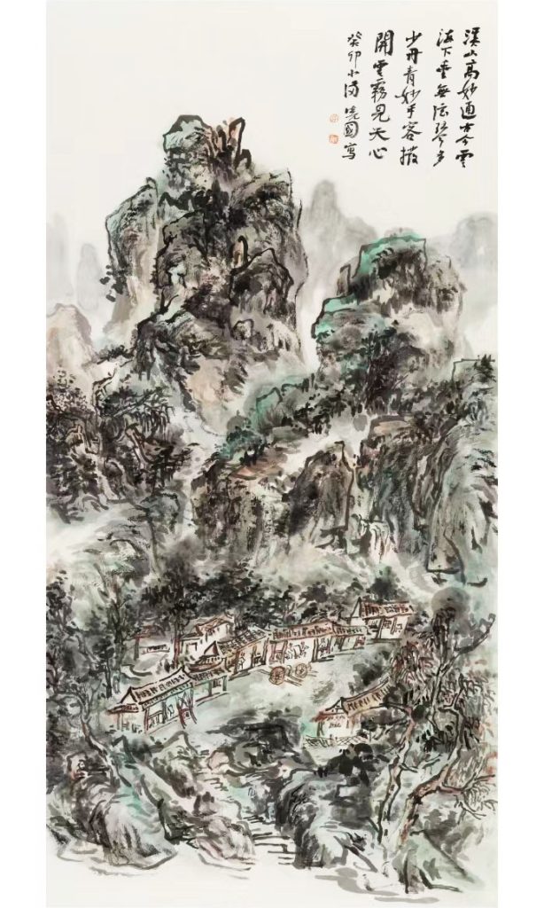昨日,在婚礼酒席间,有幸见到申晓国老师的恩师吴悦石先生。吴先生对申老师的画作大加赞赏,称他画作面貌一新。吴先生说:晓国现在画的很好,而且开始自作诗了,这个是很大的进步,放眼下去,国内能此者不多矣。确实,国家正提倡文化自信,这种自信就源自诗词、绘画,以及我们基因中的山水观,源自我们能读懂的诗词歌赋和山水寄情。