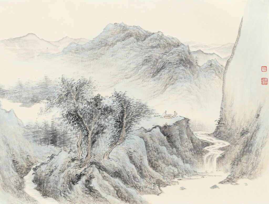 观近期东洲的作品似有新的进展,如果说之前的印象还在于消化古典意境、完善传统技法的阶段,那近期的作品可以看出东洲已经步入吐纳自如,随心而动的时期。技法方面的自如正是推动他选择艺术品性的基础,在新作中可以感受到他以南派的笔法去构建北派山水的气息,作品中山石的品相也在渐离明清传统中普遍存在的细碎平庸的山石结体的不良制约,整体而大块面的结体意向明明白白地告知了他去繁就简、心追宋元格局的艺术心境,他的绘画品位是大步走高的。他比较娴熟地运用元人松动的笔调,似松实紧,墨色的雅淡中还是能看到层层来路,疏松而淳厚,在青年一辈的画家中属于有底蕴的一位。他善于思考也勤于实践,在“继承与创新”的古老话题中东洲会有自己的思考,艺术的代代传递一定由那些潜心研习又敢于否定的艺术家担当,年轻的东洲还有许多时间为自己的山水艺术寻找到攀高一层的台阶,对用心对待山水艺术的东洲画友我是怀着期待的。