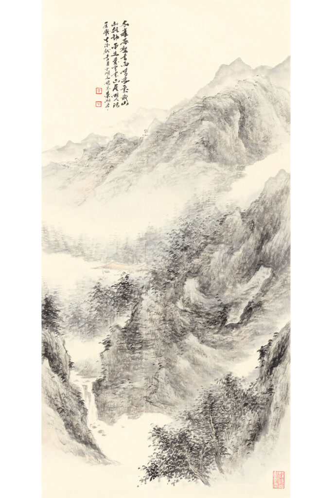 溪山寒霁   68cm×34cm    纸本设色    2020年