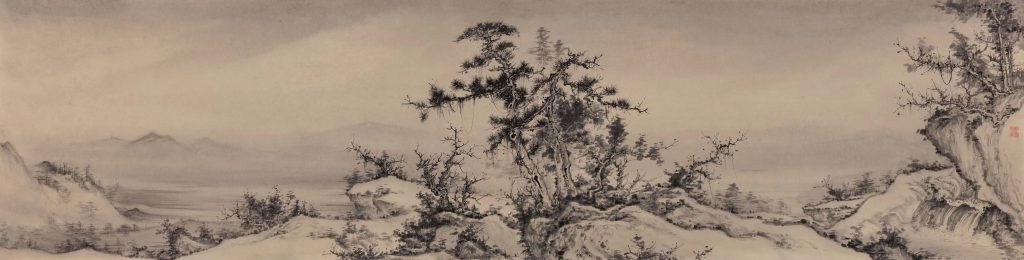仝凌飞的作品,也大致沿袭宋元绘画体系一脉略,“这看似’复古式’转摹表达,其实是画家在用敬畏之心与古人对接的结果,画面很少设色,只有淡淡的水墨晕染,线条平实且韵律简单,景物也无怪乎就是松石枯木、江雪寒林、雅石修竹之类的一些山林物象。但是我们恰恰这些简单的景物中感受到画家营造的平淡之美,空旷之境,体会到人和自然之间相互交互的赤子之心,这种意境的营造方法在’张扬自我’的今天,尤显可贵。”