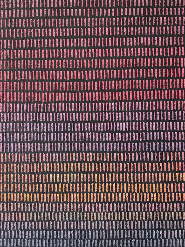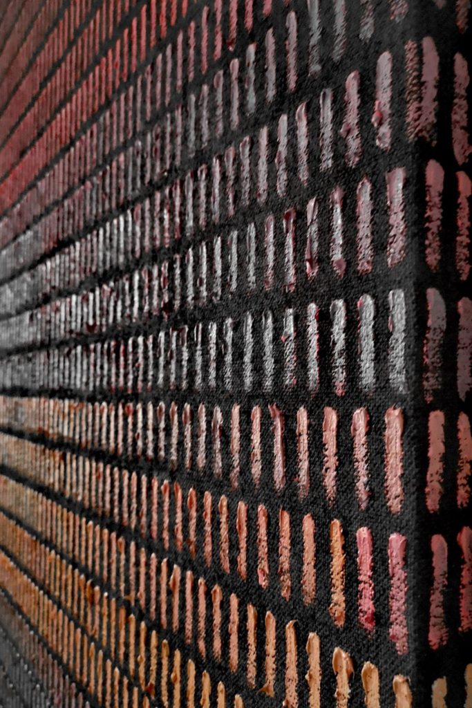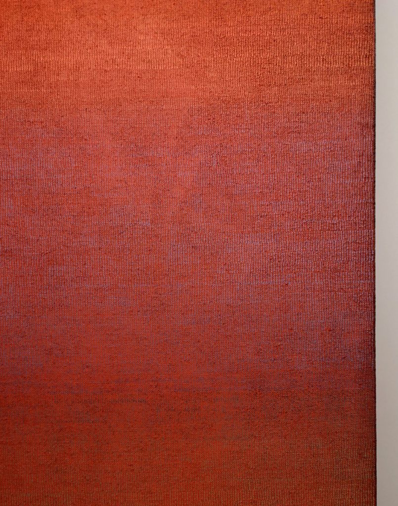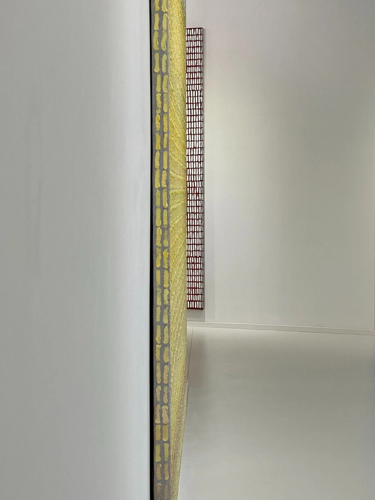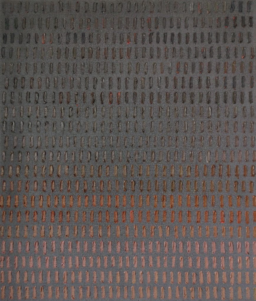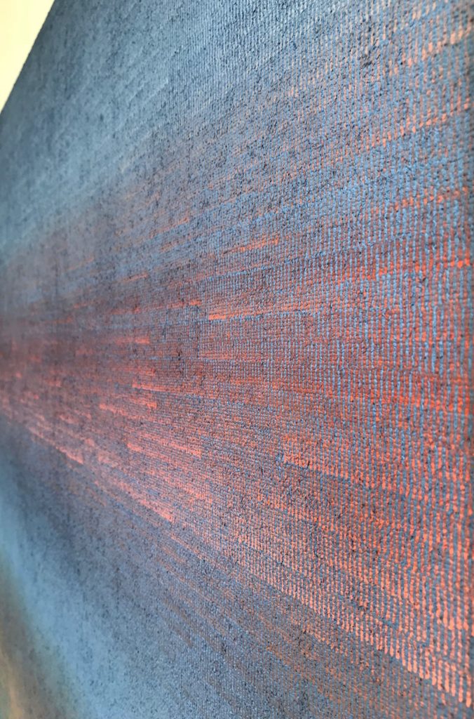 2003年,周洋明参与了著名策展人栗宪庭的展览《念珠与笔触》。栗宪庭敏锐感知到了这个新世纪之初的艺术现象:以“重复”这一手法来重获内心平静。在参展艺术家中,周洋明是少数几个至今依然保持纯粹重复笔触的艺术家之一,正如当时展览名中“念珠”隐喻的那样,持续念诵是修行中一个最易入门、但也最难坚持不辍的法门,在周洋明长达二十余年念珠般的不懈笔触中,他的笔触从最初极致纤细、乃至藏于布缝之间的“隐”,渐渐如生命般生长,走向了茁壮无遮、袒露本质的“现”;这样的变化不仅是去饰般的坦率,更来自一种以本质为力量,足以面对任何真实的勇气。
