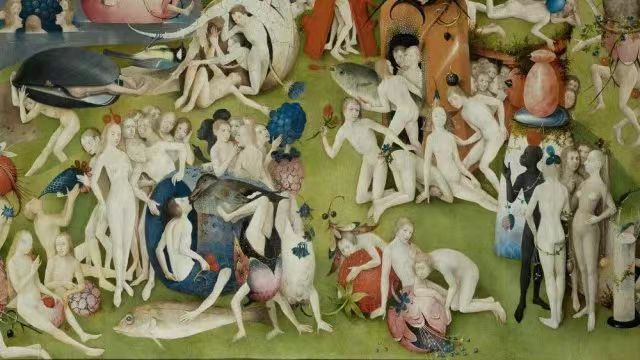 令人着迷的是,油画中涉及到的另一件美术作品来自美国最知名且富有的艺术家之一——杰夫·昆斯。在米开朗基罗作品的左边,有一只镜面抛光的金属气球狗,它是当代晚期资本主义艺术品中最具代表性的作品之一,杰夫曾为其投入大量精力。这些雕塑大部分以坚固的金属片制成,规模十分宏大,在凸显气球制品脆弱性的同时也表现了它们的庞大和坚固。在周松的作品当中,他把气球动物的鼻子直接折断,既表明了它的物质性,也展示了它的脆弱性。就整个作品来看,气球狗与作品其余部分的审美相融合,同时也彰显了市场上机器宠物泛滥的现象。这里作者再次表达了时间的转换,对其他艺术作品的引用似乎象征着艺术和技术领域消费主义的复杂性。社交机器人也通过一个女仿生人的图片在作品中得以展现,还包括一个残损的机器人手臂,以及破碎的机器人头部和肩部,它的身体已经延伸出了画框。女性形象似乎又一次克服并最终取代了之前的模型。
