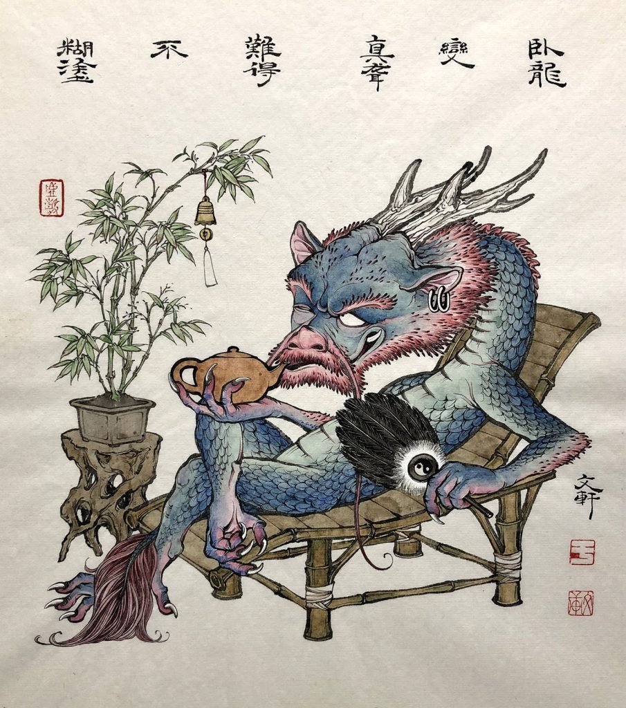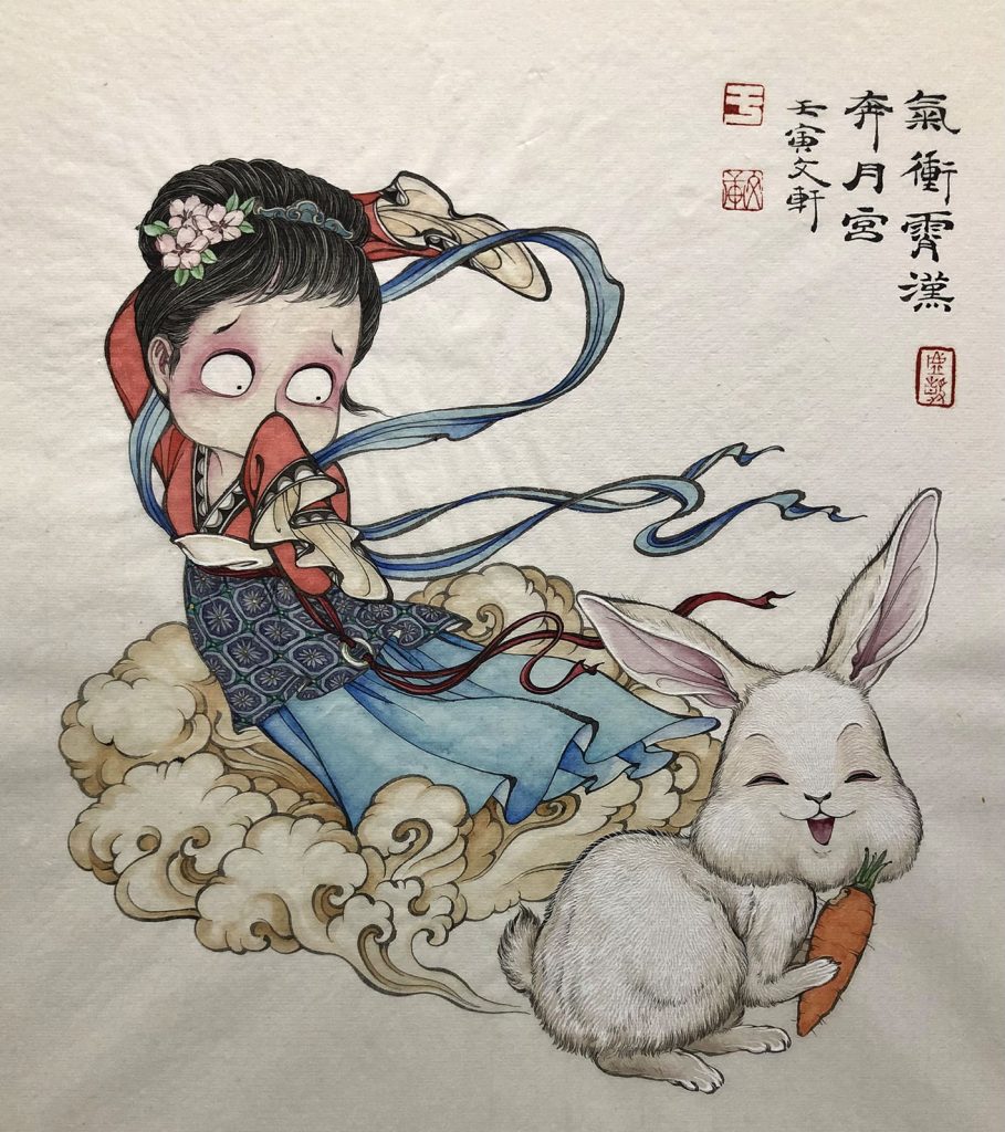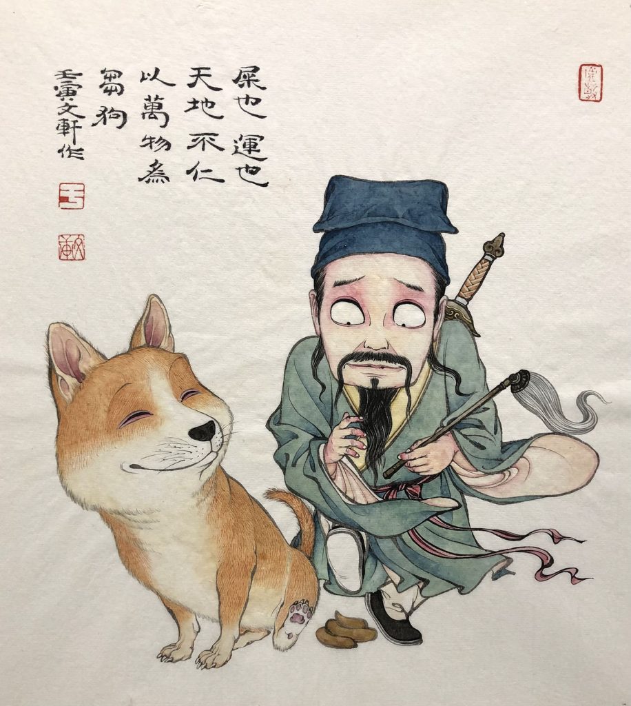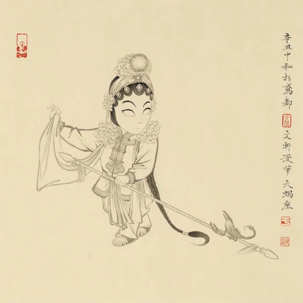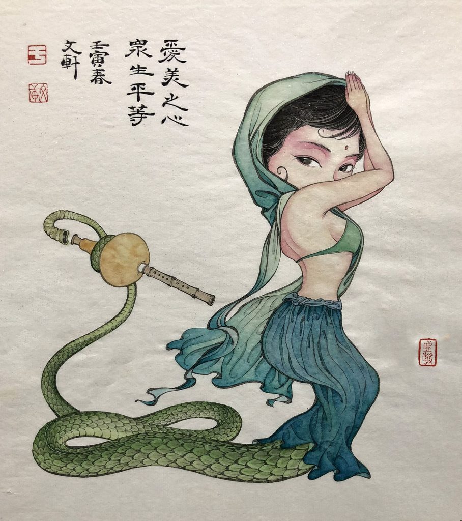 渐进不惑之年,若还不信命,只能说参悟不精,处世不深。年轻人是绝不信这套迷信蛊惑之词的。以前我也如此:一个人的成功定是自己奋斗的结果;追求理想对象,也一定是通过不懈努力而得。然大疫三年以来,通过身边的巨大变化,开始思考……有些人水平、智力、意志、品质都远不如己,却少年得志平步青云……出身、门第这些儒家早已给出了答案。孔子说“不知命,无以为君子”。人的富贵,贫贱跟人生意义无关,无论处境何地,都要活出生命的精彩。按照命理学解释即八字已注定,认同知命。再看当下的房奴,躺平,剩男剩女,子女教育……沉沉浮浮,云云如是。富贵并不等于幸福,贫贱亦不等于痛苦,兴之所至,心之所安,勿谋虚逐妄,君子真乐,皆自内心。 命理即八字,八字对干支,生肖文化历经千年至今,从出生便与每个人发生关联,也是历代画家所热衷表现的题材,把动物生肖人文符号化,以当下热点话题解释对命理的理解,感悟,多拾人牙慧。付诸笔端,才是创作之初衷。 至于画面的荒诞形式感,源于2021年《戏剧化丹青》展览。用京剧中的生、旦、净、末、丑经典戏剧形象,表现西方的十二星座,漫画的幽默性,讽刺性,反衬现实生活,又更直观诠释画面。无论西方的星座还是东方的生肖文化,都是总结命理规律,让人看清自我,热爱生命,活出精彩。· 生肖 ·