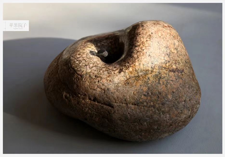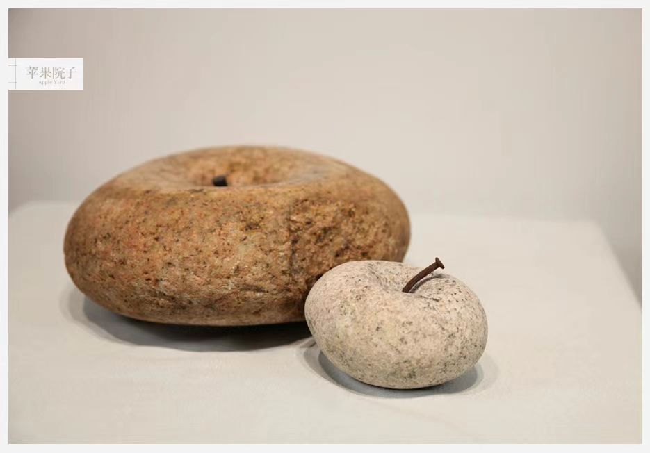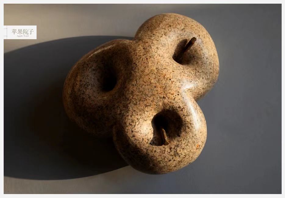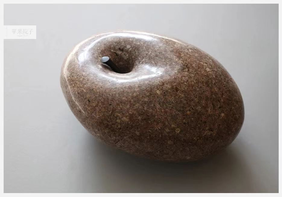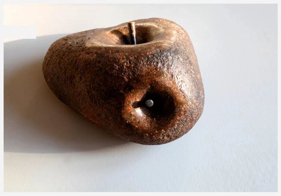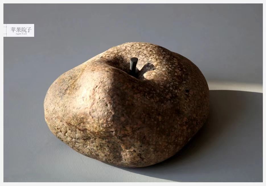 在老宋的成品中,石头并没有像颜料一样消失,而是明显在场的。但也经过了艺术手法的驯化,变成美观,成了艺术家的意志表达。老宋的这些苹果给人强烈的自由感,它们各个精致,身上却都有着原物的野性踪迹。老宋最大程度地尊重了原物。日常烟火里,苹果是一种吉祥的象征,也是极亲切的寻常水果。老宋的这些苹果工艺,集聚了坚韧,自由,平和,沉静,圆满的意头和特点,能非常恰当地放在任何角落,案头,院子,看好点石成金。