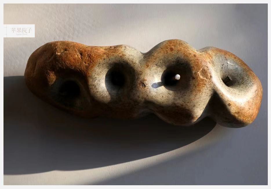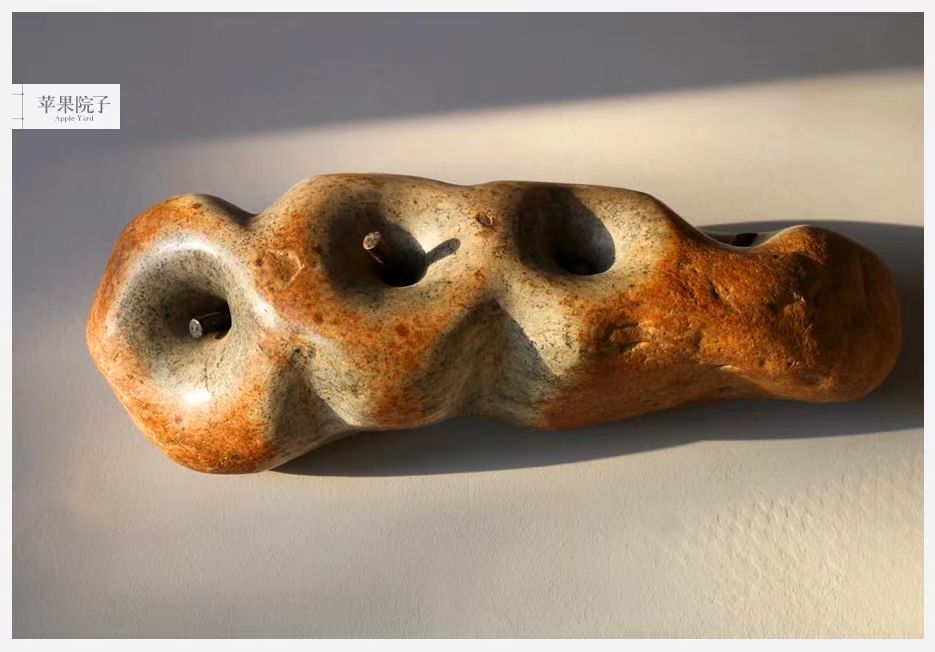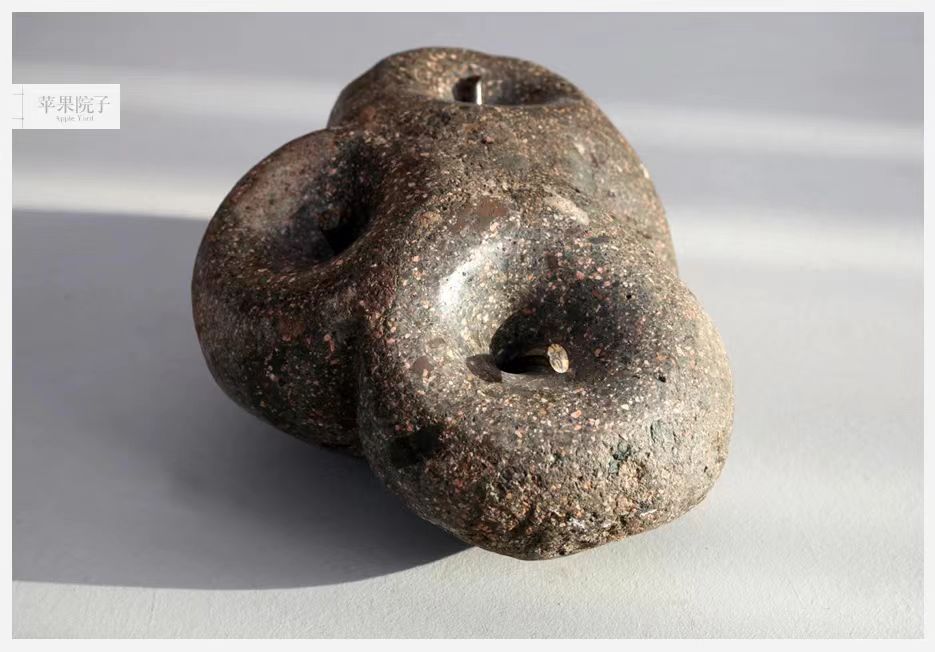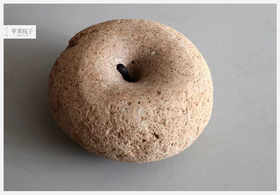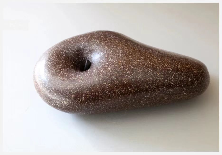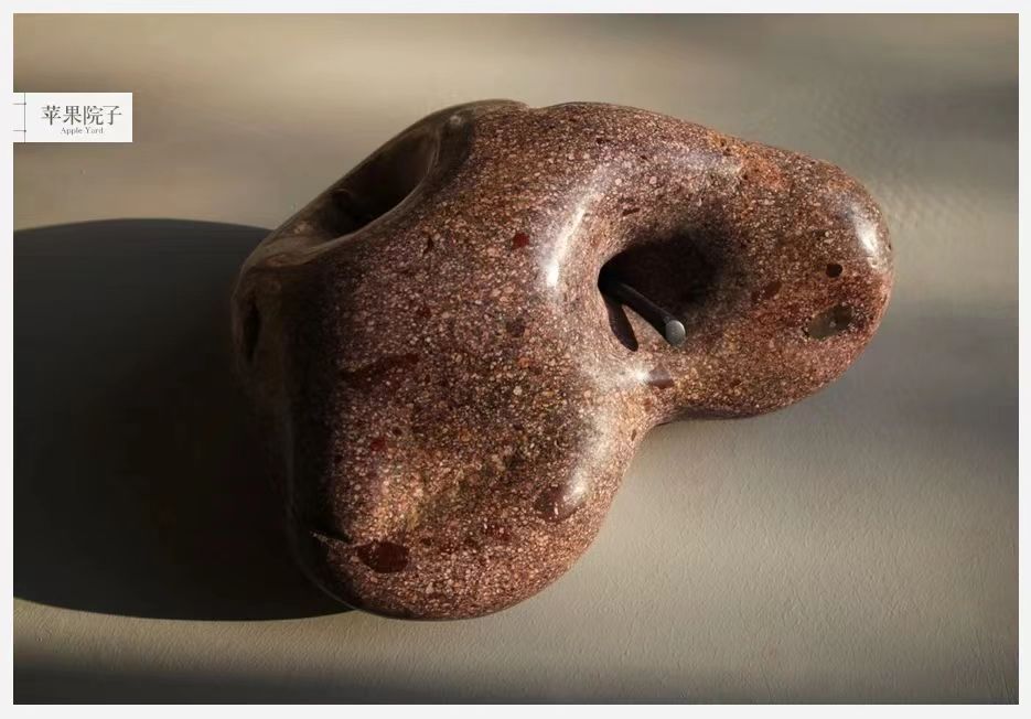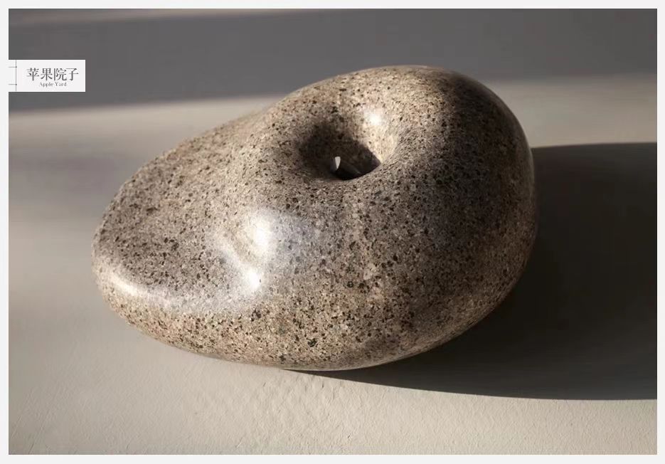 在老宋的成品中,石头并没有像颜料一样消失,而是明显在场的。但也经过了艺术手法的驯化,变成美观,成了艺术家的意志表达。老宋的这些苹果给人强烈的自由感,它们各个精致,身上却都有着原物的野性踪迹。老宋最大程度地尊重了原物。日常烟火里,苹果是一种吉祥的象征,也是极亲切的寻常水果。老宋的这些苹果工艺,集聚了坚韧,自由,平和,沉静,圆满的意头和特点,能非常恰当地放在任何角落,案头,院子,看好点石成金。