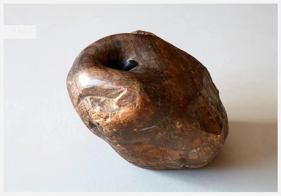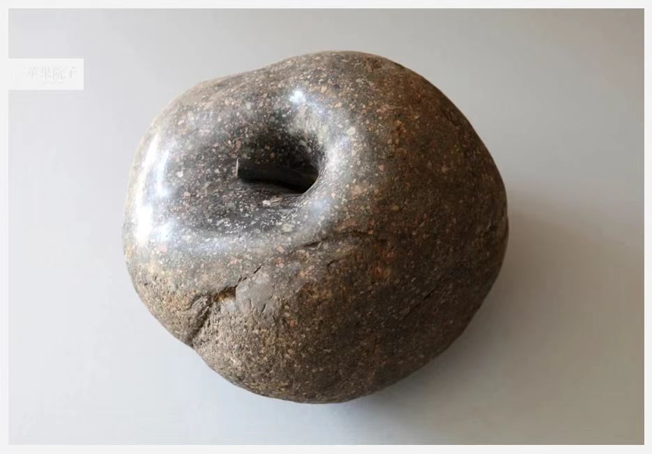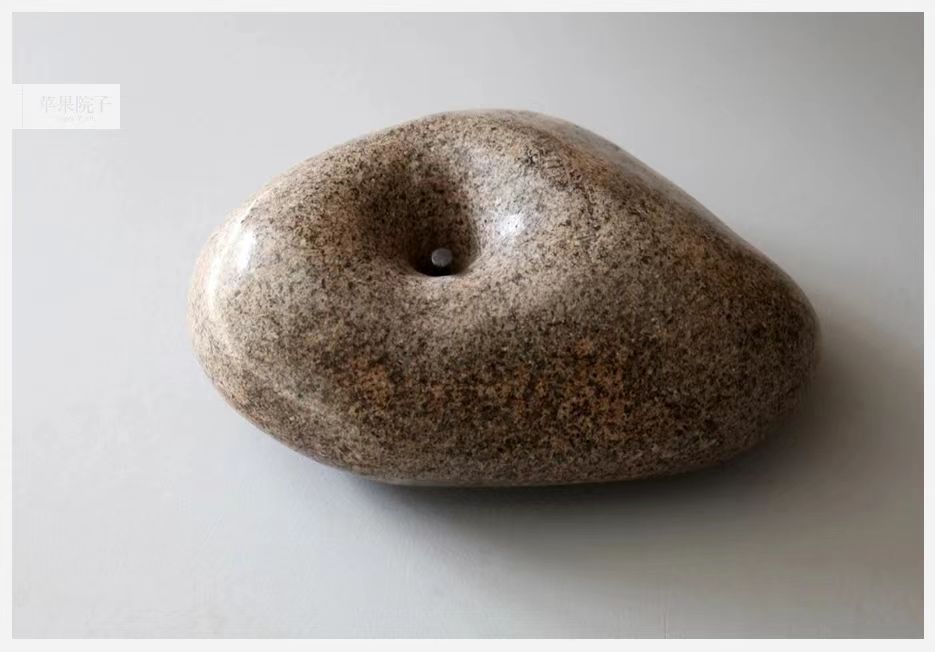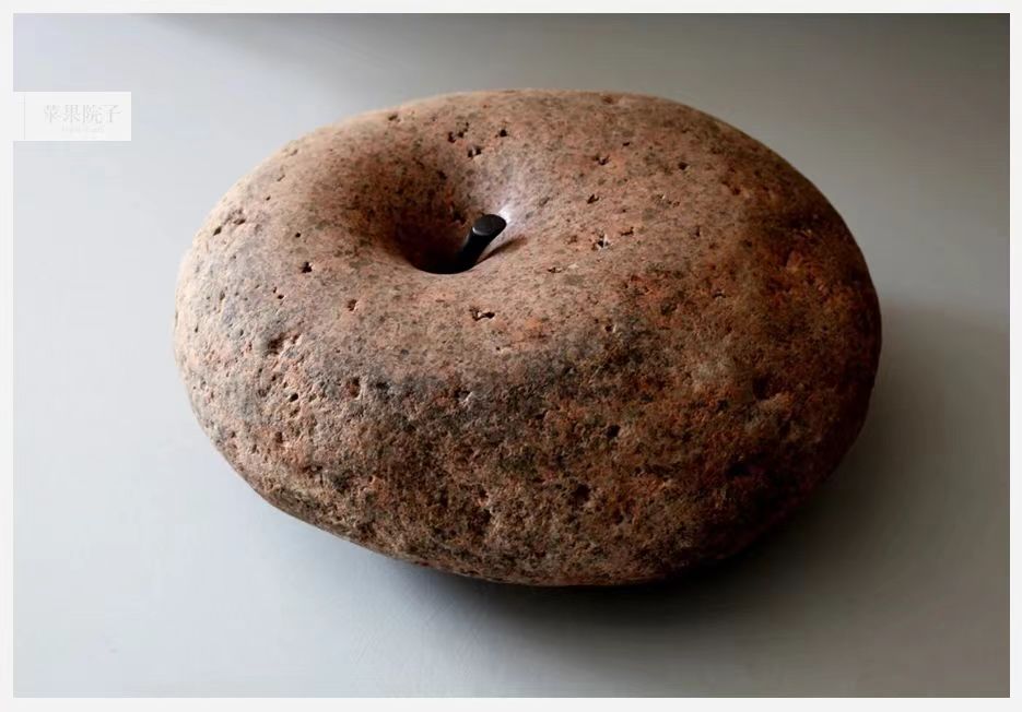 艺术家从市场买来颜料,调配满意,完成画作,颜料便消失在画面的形与意之中了。老宋把石头做成苹果,则涉及两个差别化的过程。在河中的差别化拣选,这是斯大林的凝视;然后对着每一个被选石头的差异化再创作,这一再创作则温柔无比。他并不打算把石头凿得面目全非,如果这样,第一阶段的拣选也就没意义了;而是根据它的具体情况,因材施刀,进行最小程度的变异,赋以灵魂。