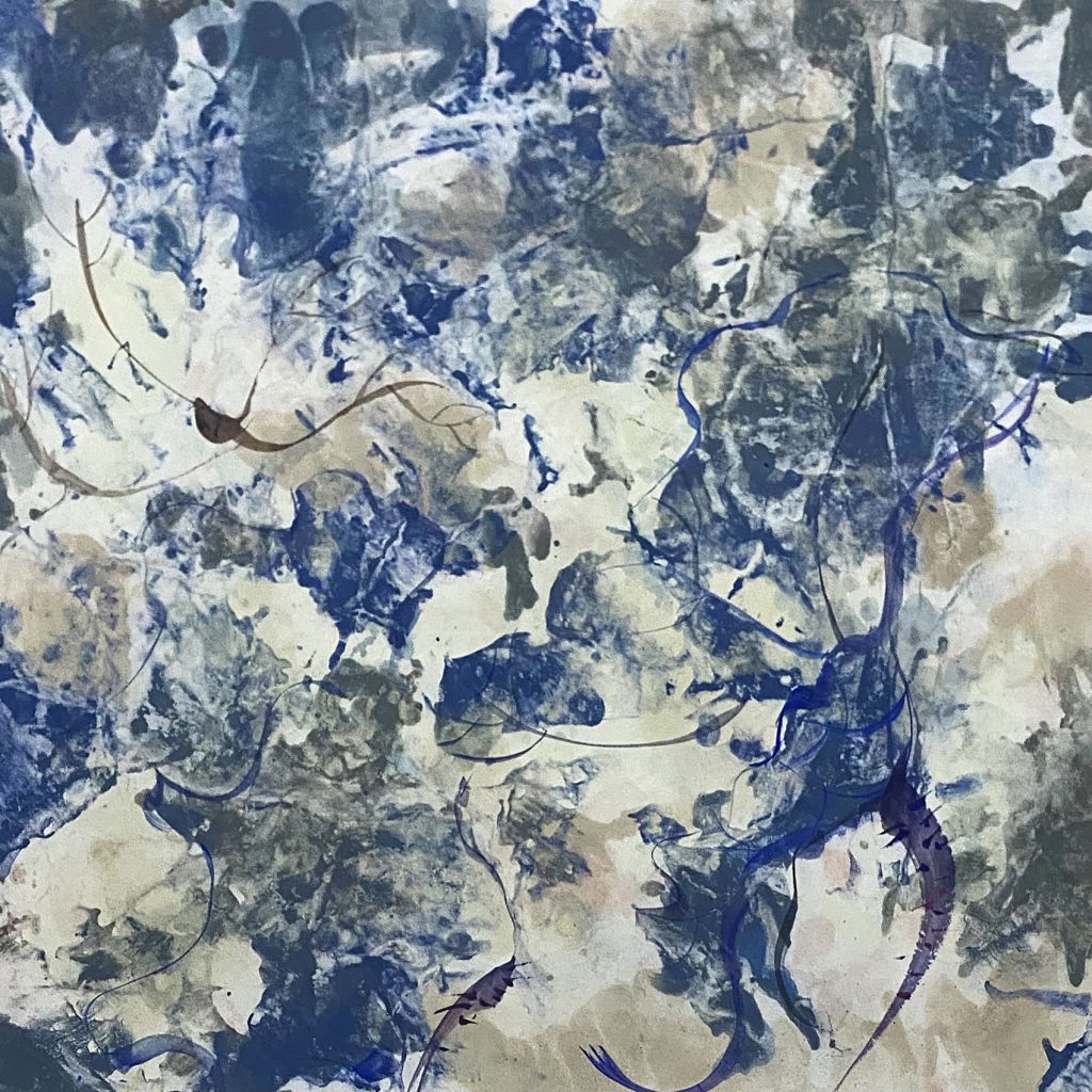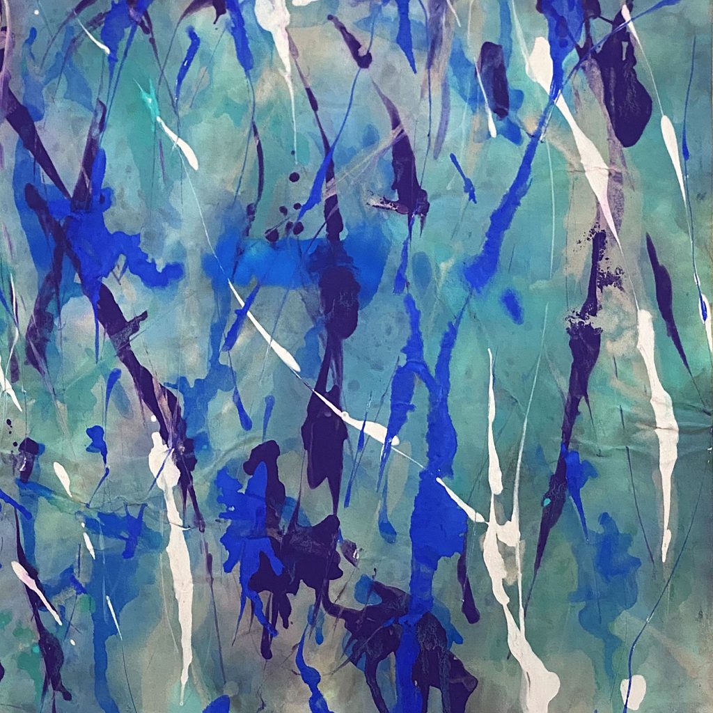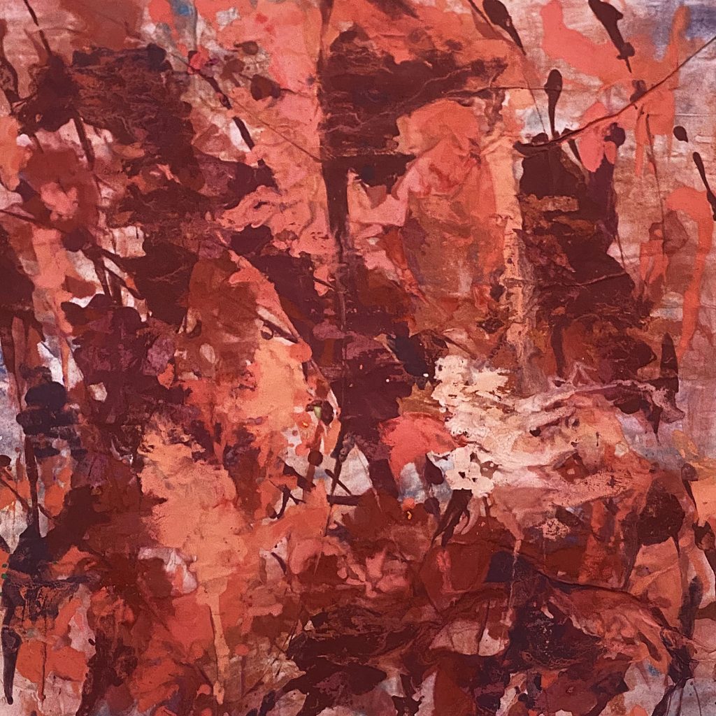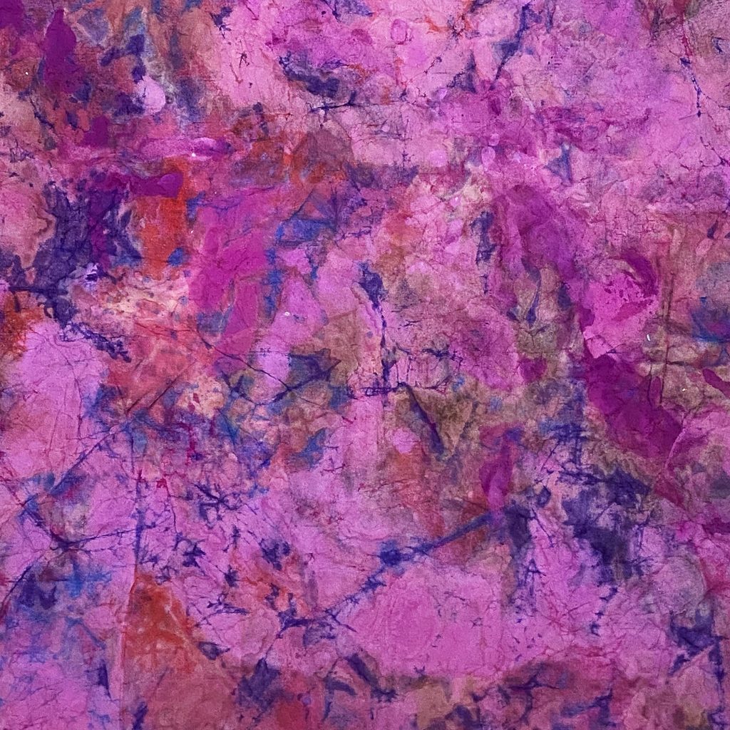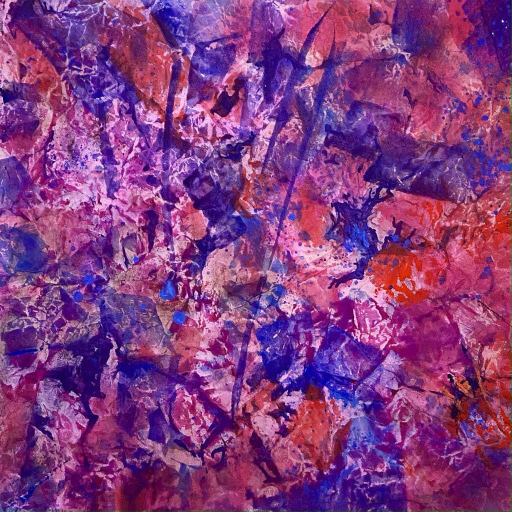 其次,画面中的色块和线条呈现出极富创意的形态。这些色块大大小小、形状各异,有的甚至构成了有趣的图案和纹理,极大地增强了画面的层次感和立体感。他甚至将宋代瓷器的冰裂纹和中国传统的扎染手法融为一体,再加上宣纸长纤维的独特特质,线条的运用更是为画面灌注了生命的力量,仿佛线条在不断地流动和变化,为观者带来极致的视觉愉悦。