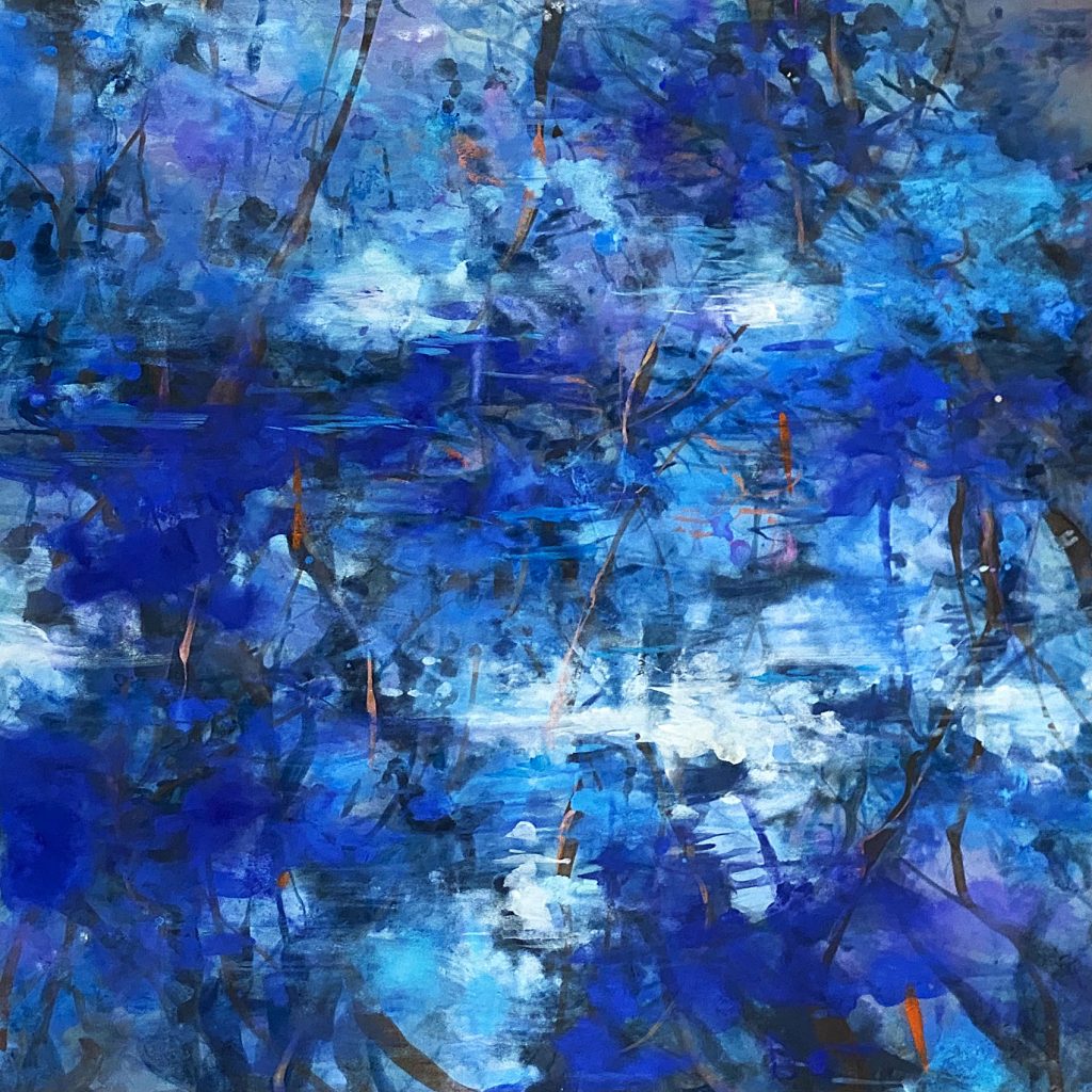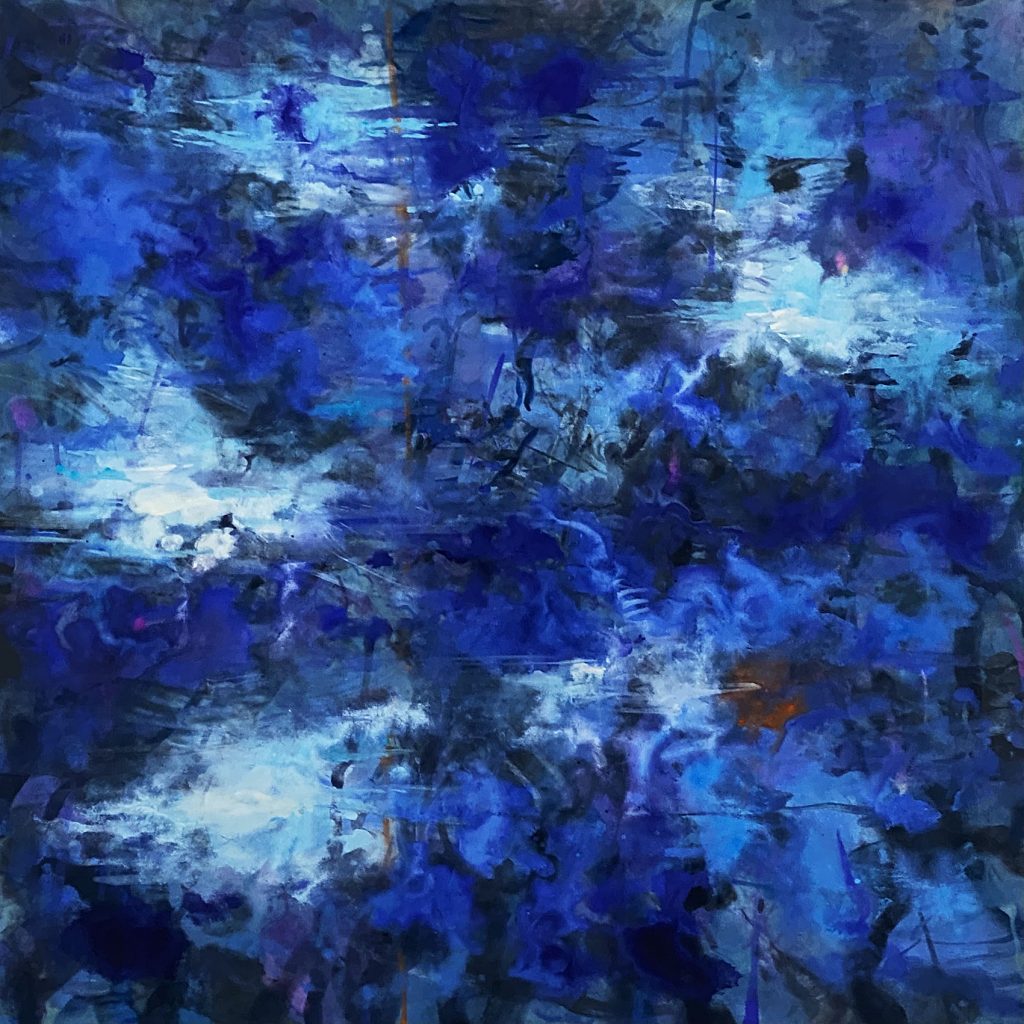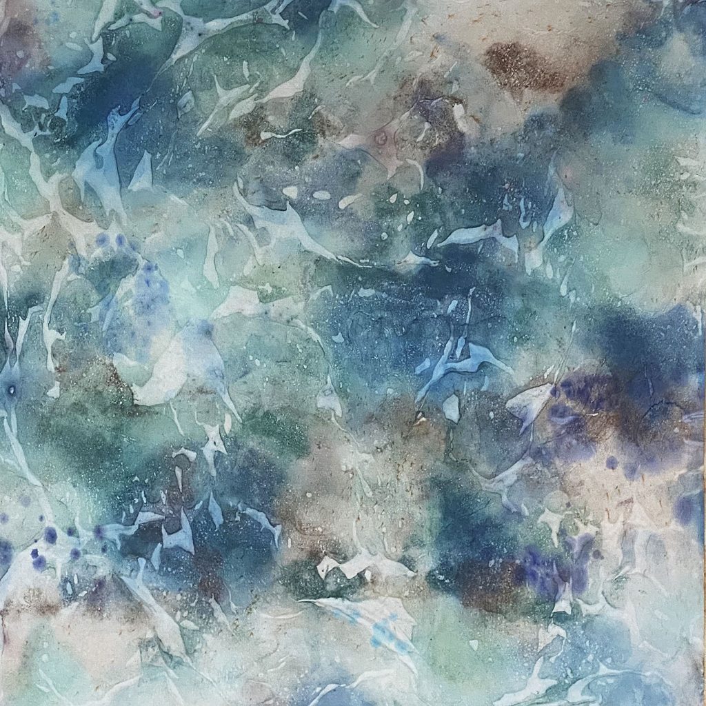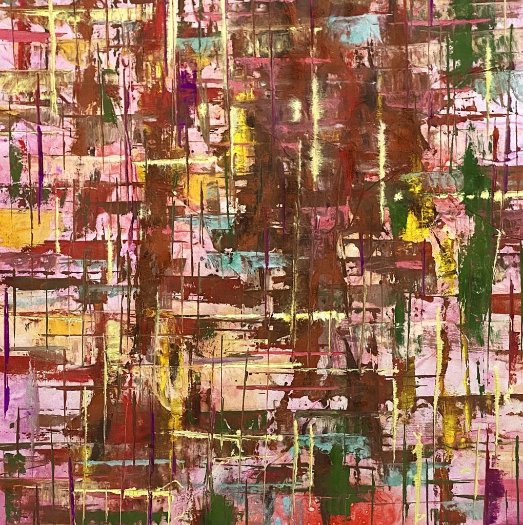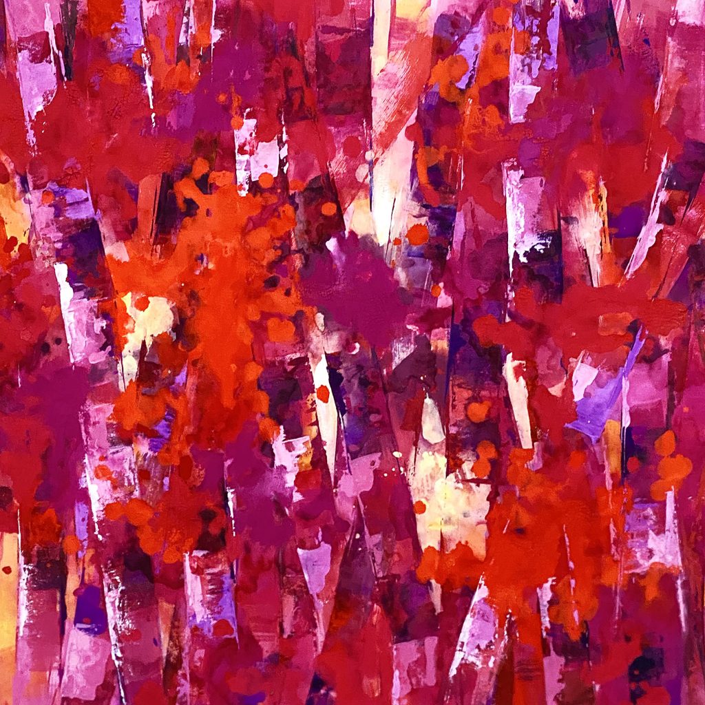 其次,画面中的色块和线条呈现出极富创意的形态。这些色块大大小小、形状各异,有的甚至构成了有趣的图案和纹理,极大地增强了画面的层次感和立体感。他甚至将宋代瓷器的冰裂纹和中国传统的扎染手法融为一体,再加上宣纸长纤维的独特特质,线条的运用更是为画面灌注了生命的力量,仿佛线条在不断地流动和变化,为观者带来极致的视觉愉悦。