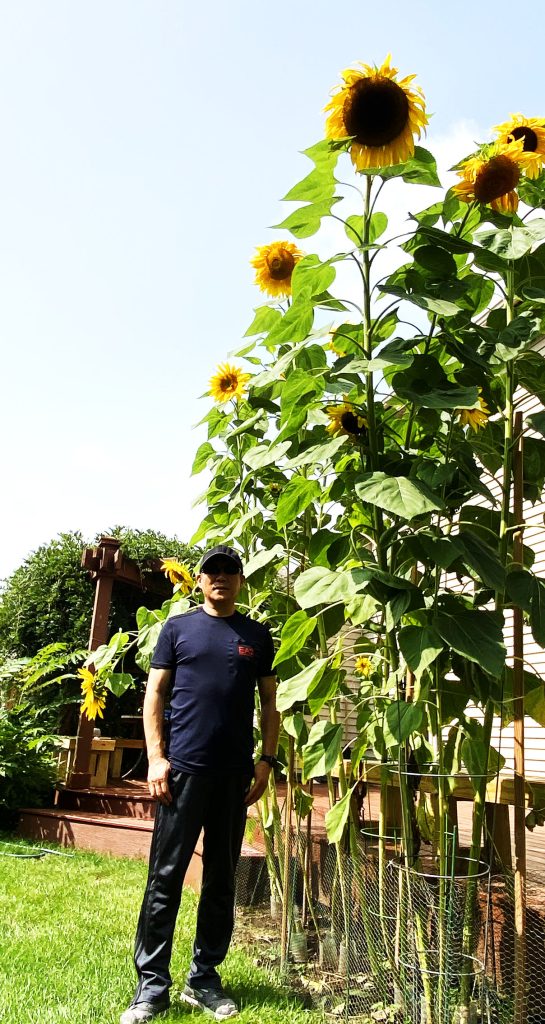 而在细节的处理上,董伟教授更是精益求精。他通过精细的笔触和细腻的色彩渲染,将向日葵的花瓣、叶片和纹理展现得惟妙惟肖。这种对细节的极致追求,使得画面充满了真实感和生动感,让人仿佛能触摸到那柔软的花瓣和细腻的叶片。